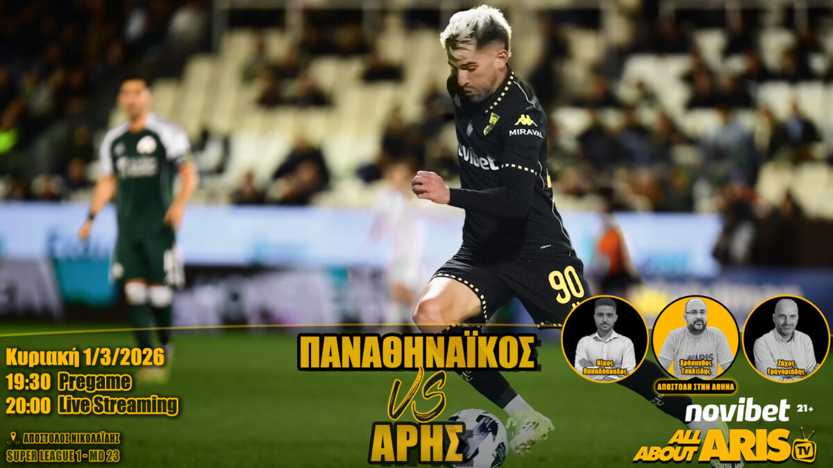 O ΑΡΗΣ θέλει να επιστρέψει στα θετικά αποτελέσματα, αντιμετωπίζοντας τον Παναθηναϊκό και το Novibet AllAboutARIS TV θα σας μεταφέρει τα όσα γίνονται στο σημερινό ντέρμπι. Ο Χρύσανθος Τσαλτίδης από το γήπεδο Απόστολος Νικολαΐδης και ο Ζάχος Γρηγοριάδης από το στούντιο, στην περιγραφή και τον σχολιασμό του παιχνιδιού. Σχόλιο και από τον Νίκο Παπαδόπουλο. Παρακολουθήστε ζωντανά το live streaming του Novibet AllAboutARIS TV: