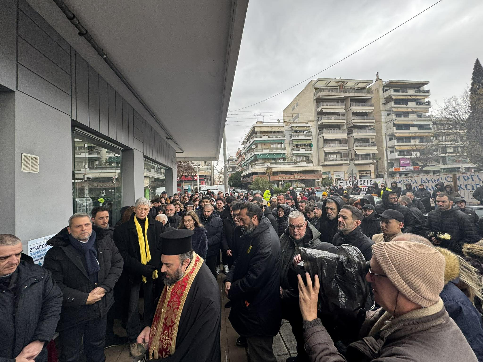 Πλήθος κόσμου στο σημείο της δολοφονίας του Άλκη Καμπανού για το τρισάγιο στη μνήμη του από τον ΑΣ ΑΡΗΣ.