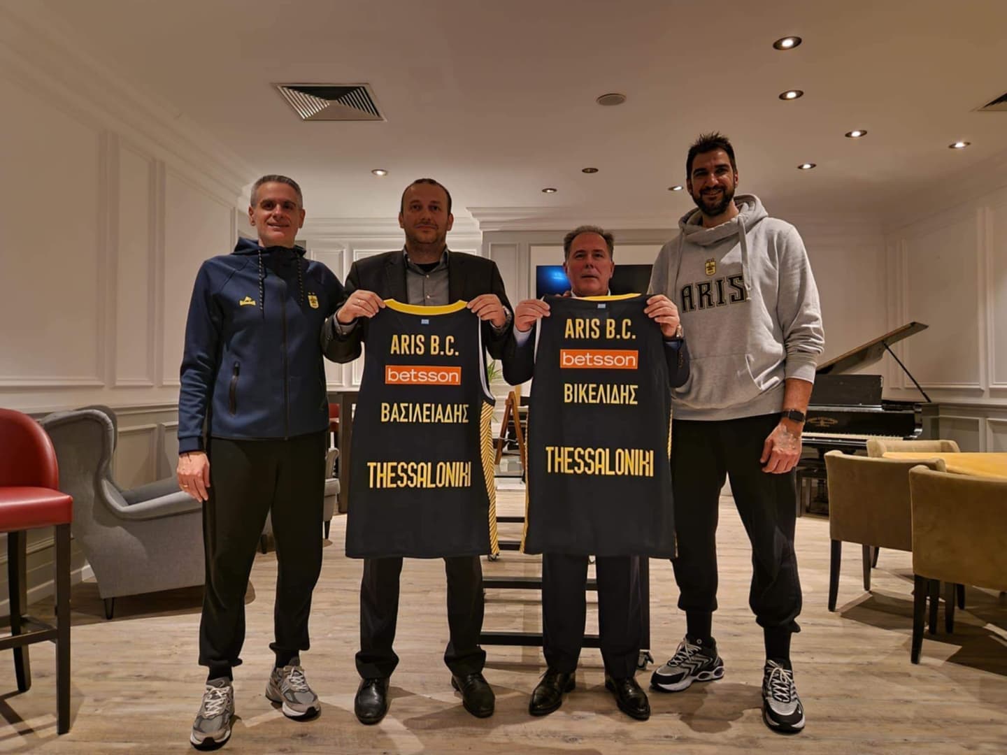 Από την πλευρά του ΑΡΗ Midea, ο προπονητής, Γιάννης Καστρίτης, έδωσε στον κ. Βικελίδη μία φανέλα της ομάδας με το όνομά του και ο οικονομικός διευθυντής της ΚΑΕ, Αλέξανδρος Γκαντώνας, αντίστοιχα στον κ. Βασιλειάδη.