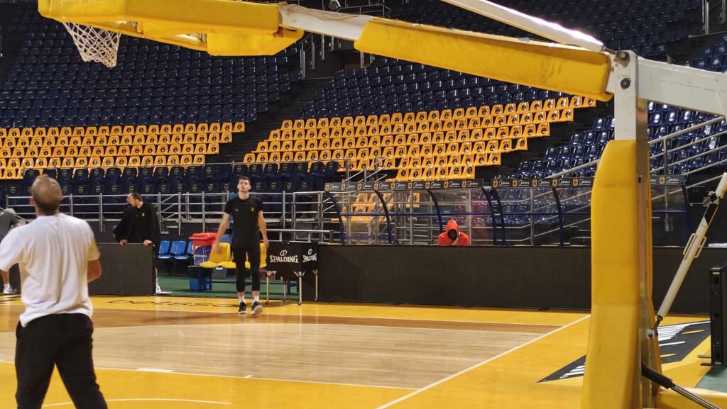 Σχεδόν 40 ημέρες μετά, ο Ρόμπερτς Μπλούμπεργκς πάτησε στο παρκέ του Nick Galis Hall, στη τελευταία προπόνηση των “Κιτρινόμαυρων” πριν την Ουλμ.