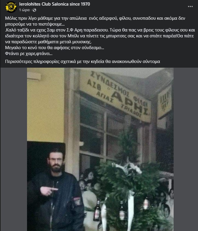 Το δικό τους συλλυπητήριο μήνυμα για τον χαμό του Γρηγόρη Σαμαρά έστειλαν οι Ιερολοχίτες: