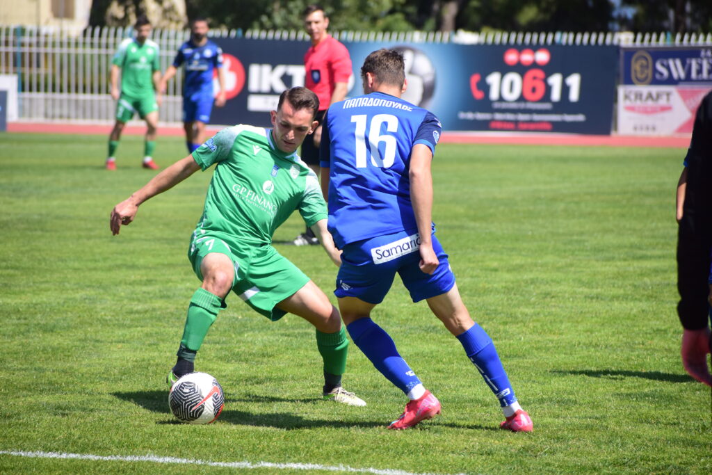 Ο Χατζηδημητρίου βγήκε μόνος του με το τέρμα, αλλά πλάσαρε την μπάλα στο αριστερό δοκάρι!