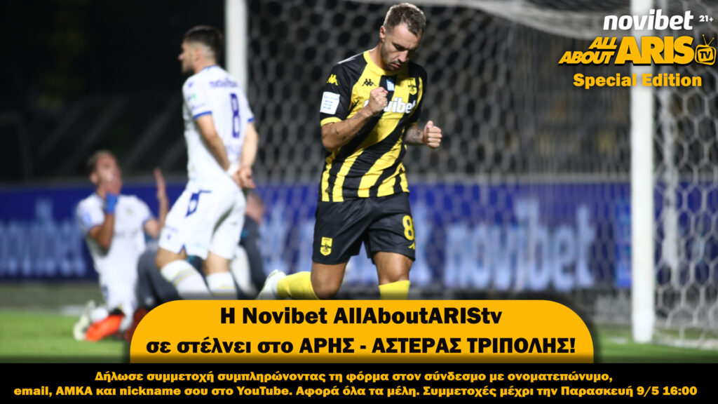Ο ΑΡΗΣ υποδέχεται τον Αστέρα Τρίπολης στο φινάλε των φετινών αγωνιστικών υποχρεώσεών του και η Novibet AllAboutARIS TV σας δίνει την δυνατότητα να παρακολουθήσετε το ματς από κοντά.