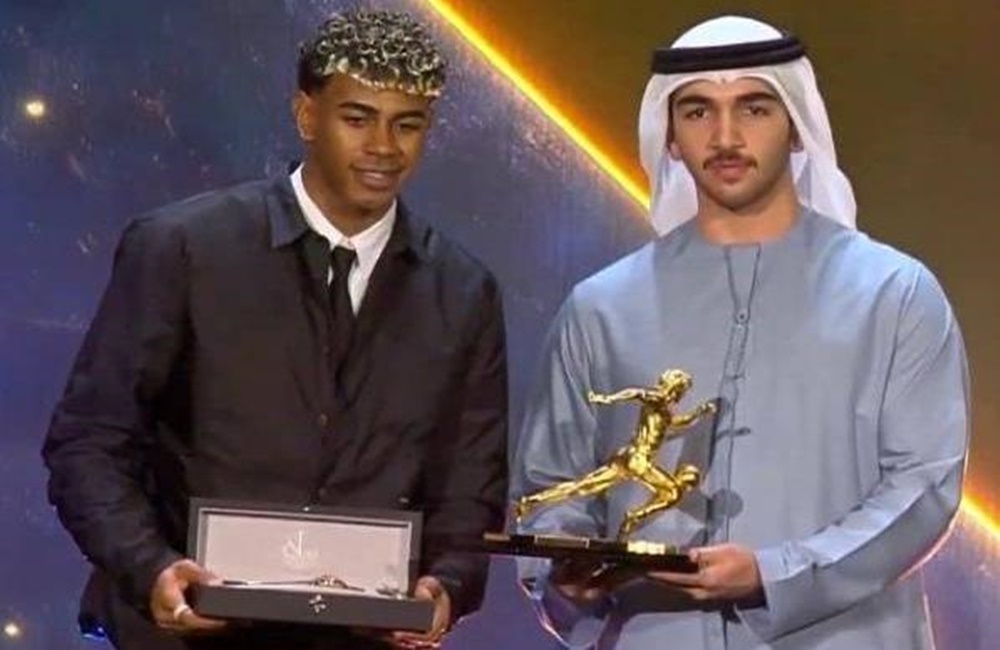 Κορυφαίος επιθετικός για το 2025 αναδείχθηκε στα βραβεία Globe Soccer Awards ο Λαμίν Γιαμάλ, ο οποίος παρέλαβε το βραβείο από έναν θρύλο της Μπαρτσελόνα, τον Αντρές Ινιέστα.