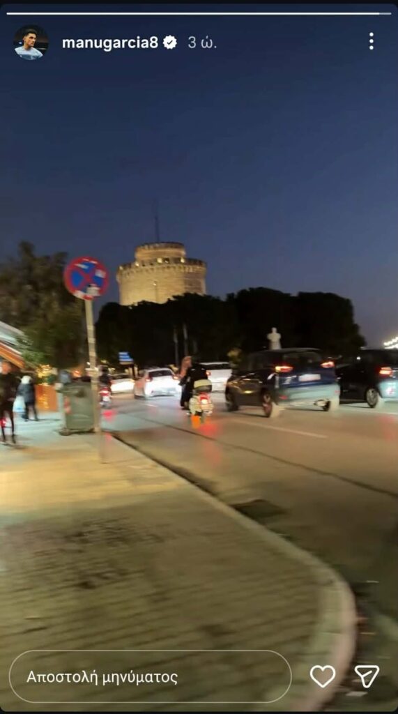 Μία ανάρτηση μέσω story στο Instagram από τη Θεσσαλονίκη και συγκεκριμένα από τον Λευκό Πύργο πραγματοποίησε ο Μανού Γκαρσία, επιβεβαιώνοντας το δέσιμο που έχει αναπτύξει με την πόλη μέσω της παρουσίας του στον ΑΡΗ. Ο Ισπανός μεσοεπιθετικός αποχώρησε από τους «κιτρινόμαυρους» περίπου πριν από έναν χρόνο, προκειμένου να συνεχίσει την καριέρα του στις ΗΠΑ και την Κάνσας Σίτι.