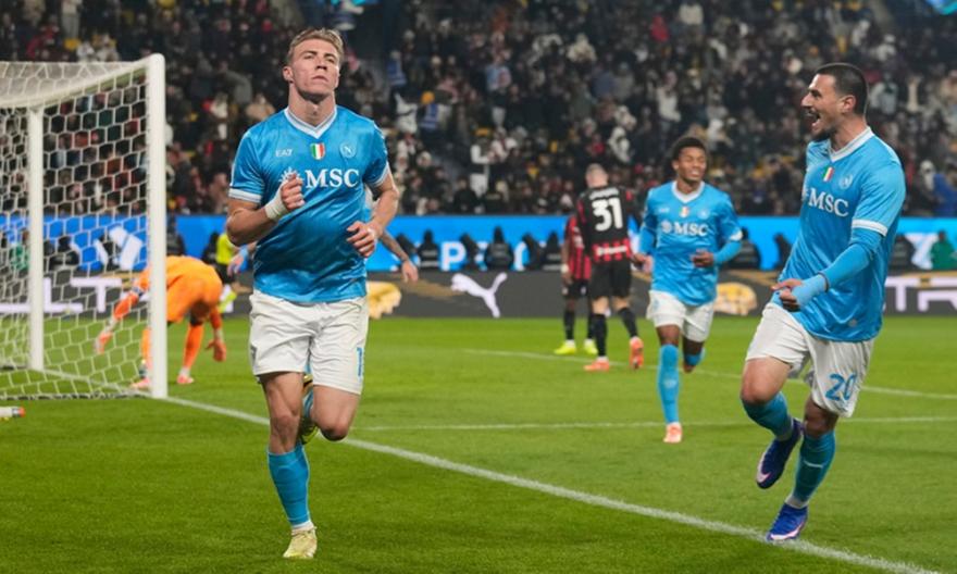 Η Νάπολι πήρε το εισιτήριο για τον τελικό του Supercoppa, επικρατώντας 2-0 της Μίλαν στη Σαουδική Αραβία. Οι «παρτενοπέι» είχαν πρωταγωνιστές τους Νέρες και Χόιλουντ, οι οποίοι σκόραραν και χάρισαν στην ομάδα του Αντόνιο Κόντε την πρόκριση, με στόχο πλέον το τρίτο τρόπαιο της ιστορίας τους στη διοργάνωση.
